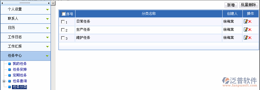 有權(quán)限的用戶(hù)可以新增任務(wù)分類(lèi)。