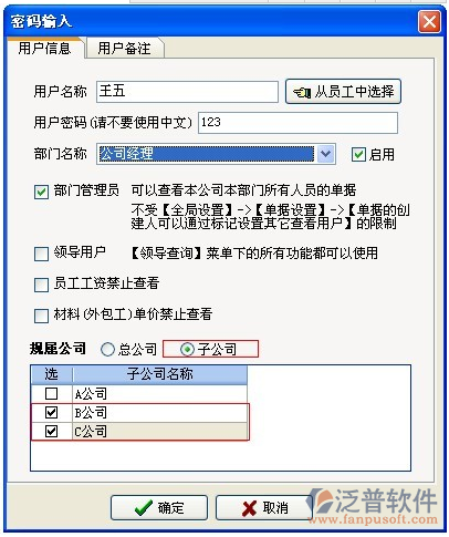 如上圖:王五規(guī)屬于B、C公司,是【公司經(jīng)理】可以看到B、C兩個公司的所有部門、所有授權(quán)項目有關(guān)的業(yè)務(wù)單據(jù)。