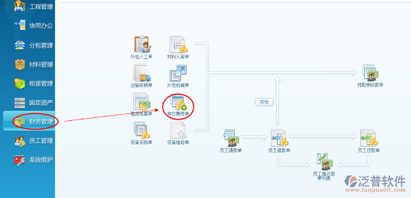 投標(biāo)項(xiàng)目的費(fèi)用錄入流程:導(dǎo)航欄財(cái)務(wù)管理---其它費(fèi)用單---付款單
