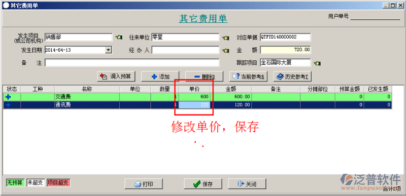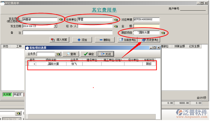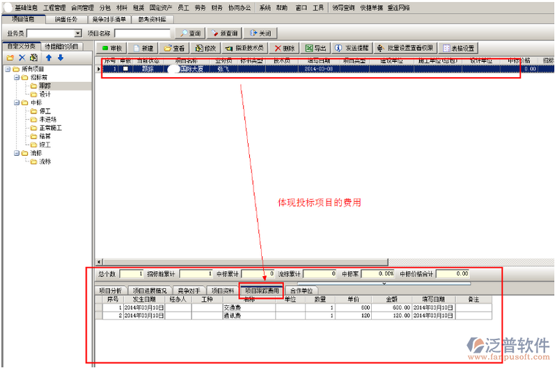 投標(biāo)之前發(fā)生的費(fèi)用,可以錄入【其它費(fèi)用單】。