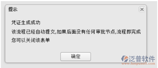2. 當(dāng)流程流轉(zhuǎn)到制證節(jié)點(diǎn)時(shí),點(diǎn)擊生成憑證按鈕后,系統(tǒng)會(huì)彈出