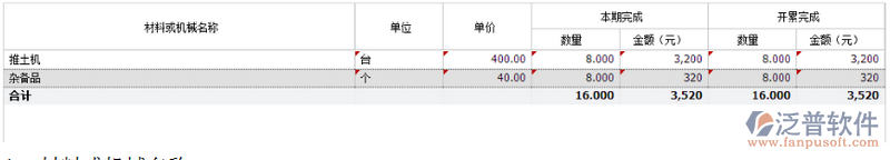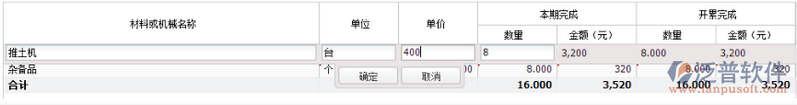 4) 金額:計(jì)算值,計(jì)算公式為:【“單價(jià)”*“本期完成—數(shù)量”】;