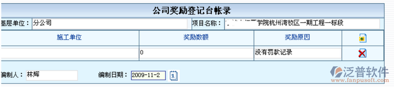 工程質(zhì)量獎(jiǎng)勵(lì)單,登記界面如下圖所示: