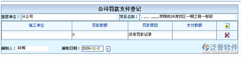 工程質(zhì)量罰款支付,登記界面如下圖所示: