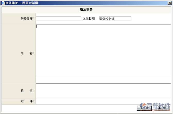 輸入相關(guān)事務(wù)信息,信息輸入無(wú)誤后點(diǎn)擊“保存”功能按鈕,事務(wù)添加成功;