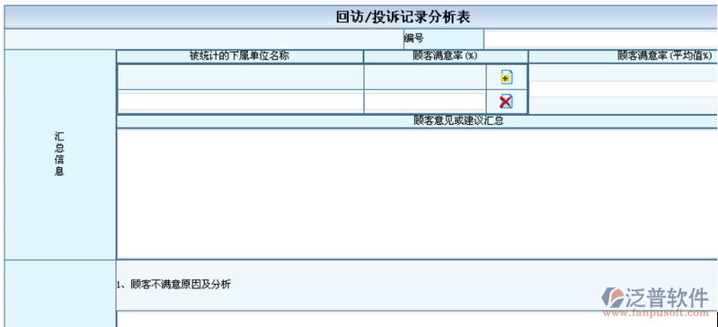 記錄顧客的意見和建議以及不滿意的原因分析及處理結(jié)果等信息。界面如下圖所示: