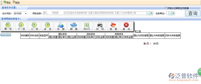 1、登錄項目管理系統(tǒng),點擊功能菜單,成本管理->材料成本->材料成本分析表,系統(tǒng)轉(zhuǎn)入費用查詢列表,系統(tǒng)瀏覽窗口如下圖: