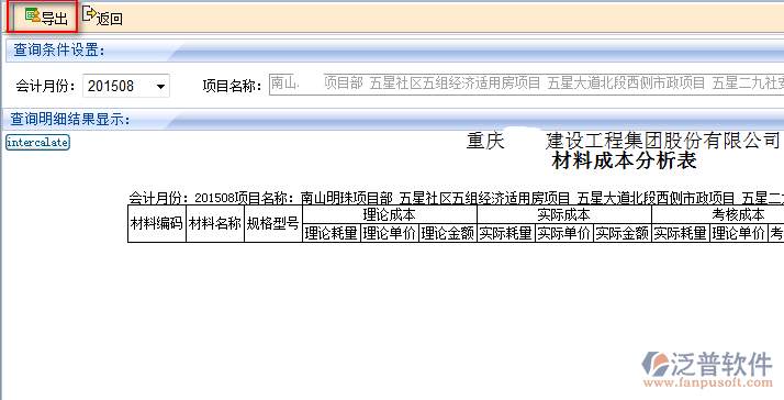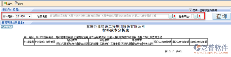 2、材料成本分析可通過系統(tǒng)系統(tǒng)的檢索條件進(jìn)行模糊查詢。系統(tǒng)支持多條件或單個條件進(jìn)行查詢。其中項目可以多個項目同時查詢。如圖: