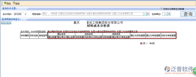 3、查詢到的材料成本分析明細(xì)可詳細(xì)看到:理論成本、實際成本、考核成本等相關(guān)數(shù)據(jù)。方便領(lǐng)導(dǎo)層分析是否盈虧等。如圖: