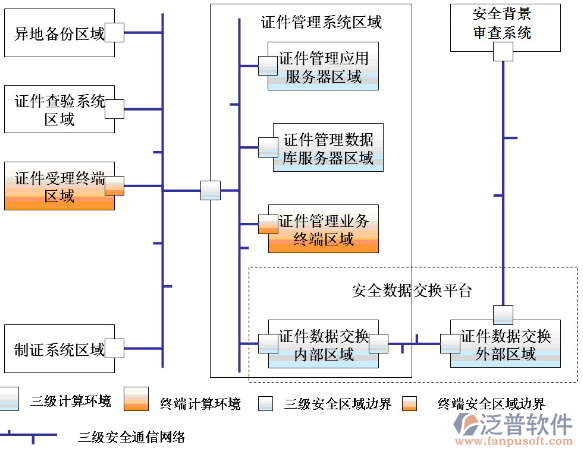針對(duì)證件管理系統(tǒng),確認(rèn)的保護(hù)對(duì)象以及分區(qū)、分域的劃分方式如下: