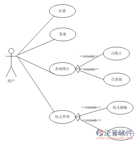 主要描述了系統(tǒng)為用戶所提供的功能提供給用戶的功能主要是用戶注冊,登錄。個(gè)人財(cái)物的收支管理,收支統(tǒng)計(jì)查詢。
