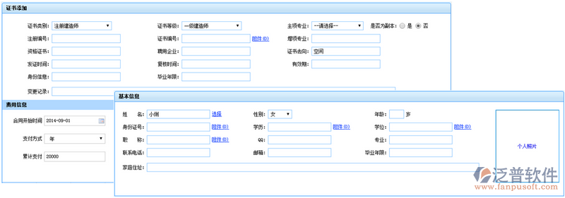 當(dāng)前位置:工程項(xiàng)目OA系統(tǒng) > 建筑施工OA系統(tǒng) > 功能介紹 > 證件管理 > 證書信息添加