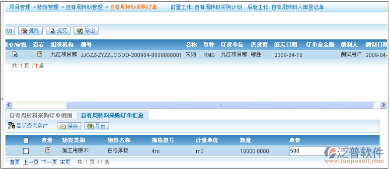 步驟3:在子表采購訂單匯總中,錄入單價,點(diǎn)擊“保存”,如下圖所示: