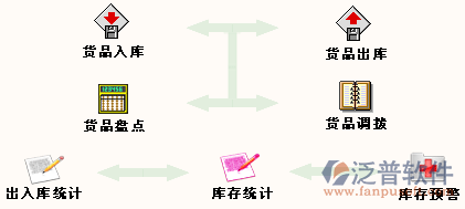 泛普倉庫管理系統(tǒng)功能模塊:采購管理、銷售管理、庫存管理、現(xiàn)金銀行、應收應付、出納管理