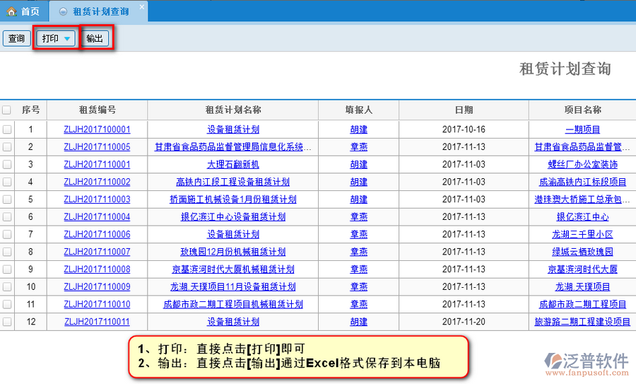 (4)、輸出:如果當前租賃合同列表的模板不是自己想要的,可以點擊輸出通過Excel表格的格式保存到電腦,對列表進行第二次自定義的修改