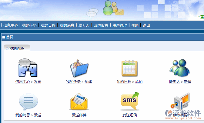 泛普軟件泛普OA系統(tǒng)是一套以團隊工作任務管理和即時溝通協(xié)作為核心的企業(yè)管理軟件,可視為一個高效精簡的企業(yè)OA系統(tǒng)。它主要提供了工作任務的安排、監(jiān)控、協(xié)作和交流,信息發(fā)布和溝通,公務及私人日程管理,公共或私有聯(lián)系人管理等功能,無縫集成手機短信平臺和電子郵件平臺,可提供靈活的短信/郵件發(fā)送和任務通知,有機地將工作任務管理與辦公協(xié)作、個人信息管理整合在一起,以簡潔的界面、簡易的操作和精心的細節(jié)設計使整個團隊可以在統(tǒng)一的平臺上便捷地管理所有的工作事項,并進行最直接和靈活的溝通和交流,將極大地提高工作效率并降低管理成本。