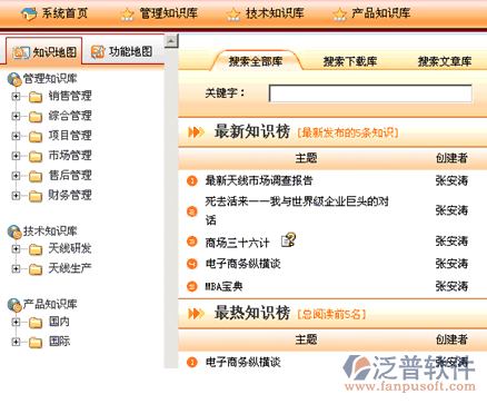 泛普軟件泛普OA系統(tǒng)知識管理平臺——是泛普科技公司創(chuàng)新研發(fā),基于互聯(lián)網(wǎng)架構(gòu),快速分析企業(yè)知識結(jié)構(gòu)、分類存儲知識數(shù)據(jù)、共享知識應(yīng)用、提升企業(yè)管理效率,增值企業(yè)知識資產(chǎn),提升企業(yè)核心競爭力的軟件系統(tǒng)。