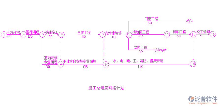 泛普軟件-建筑施工管理軟件進度計劃網(wǎng)絡(luò)圖: