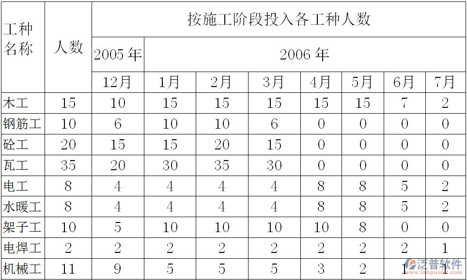 施工管理軟件勞動力計劃