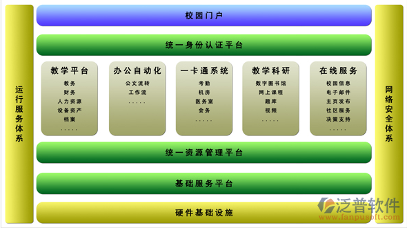 泛普軟件泛普OA系統(tǒng)提供8種權限用戶:校長室(可查詢所有學生成績信息),班主任(可錄入、查詢所任班級的所有學生成績信息),任課老師(可錄入、查詢所任班級課程的所有學生成績信息),學生、學生家長(可查詢本學生的成績信息),管理員(最高權限),年級組長(年級中的管理員權限),督察人員(專門針對學生評價系統(tǒng)內(nèi)容的用戶類型)。