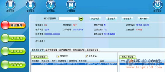 泛普軟件培訓(xùn)學(xué)校管理軟系統(tǒng),綜合了培訓(xùn)學(xué)校完整的工作流程,如教學(xué)、教師、學(xué)生、市場、行政、人事、財務(wù)等九大系統(tǒng)功能模塊,并集成了短信群發(fā)系統(tǒng)。各功能模塊的優(yōu)化組合,使信息能夠交互應(yīng)用,自動生成的各類數(shù)據(jù)表分析,有效地控制了不必要的成本支出,加強了學(xué)校對外的營銷宣傳力度,提高學(xué)校對內(nèi)的教學(xué)質(zhì)量。不同的教學(xué)點可統(tǒng)一管理,輕松實現(xiàn)學(xué)校的數(shù)字化管理。軟件開發(fā)采用先進的技術(shù),功能強大,實用性及拓展性強,實現(xiàn)一勞永逸。在學(xué)校的發(fā)展歷程中,不斷地為學(xué)校創(chuàng)造超值的利潤。