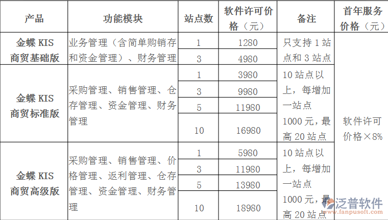 金蝶KIS商貿(mào)標準版多少RMB可以買下來?要3個站點的