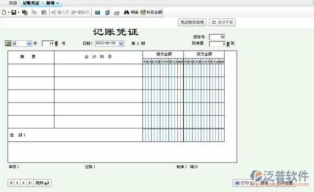 記賬:采用通用會計憑證格式,集成最新會計科目,輕松、快速新建憑證。