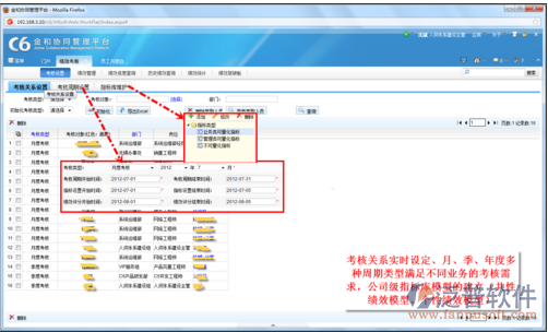 考核設(shè)置主要是設(shè)置績(jī)效考核管理的基礎(chǔ)數(shù)據(jù),而考核關(guān)系的實(shí)時(shí)設(shè)定,多種考核周期類(lèi)型的自由選擇可滿足不同部門(mén),不同企業(yè)的不同業(yè)務(wù)的需求,同時(shí)也可根據(jù)不同崗位,不同職位建立公司級(jí)的指標(biāo)庫(kù)模型。