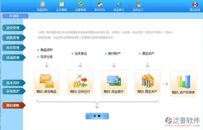 ◆ 導(dǎo)航頁面:   可引導(dǎo)用戶了解和熟悉本軟件的基本功能模塊,用戶無須看軟件的使用說明書,跟隨導(dǎo)航頁面的指引,即可完成用戶的期初數(shù)據(jù)錄入工作和后期業(yè)務(wù)操作。