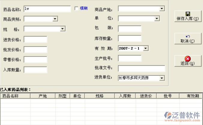 泛普軟件藥品進銷存管理系統主要功能及特點: