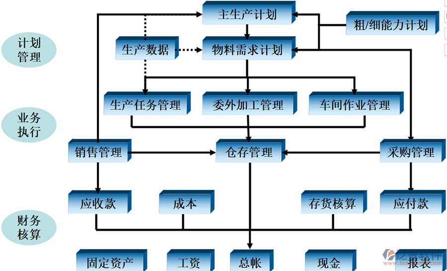 資金是企業(yè)的血液,對企業(yè)來說,往往是管理成功之處,也常常是問題突出的地方。做好資金管理文章,一、要籌好籌足,二、要用好用活,三、要管好管嚴。通過實行ERP,突出財務部門的核心職責,可以實現限制內耗、降低采購成本和壓縮庫存,使企業(yè)的資金調動更加合理。對于銷售環(huán)節(jié),通過實行ERP系統,可以實現對客戶的統一管理和信譽評估,加強對應收帳款的監(jiān)控可以大大減少拖欠。