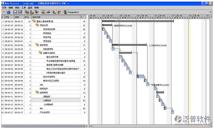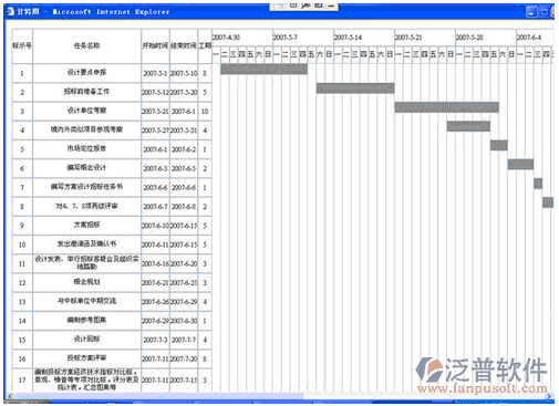 項目進度計劃管理軟件針對本項目調度的工作主要有:監(jiān)督項目計劃的實施、調整協(xié)調各方面的進度關系;監(jiān)督檢查項目準備工作;督促軟件公司按計劃對系統(tǒng)進行編碼工作并對臨時出現(xiàn)問題采取調配措施;對項目計劃的實施結合實際情況進行必要調整;泛普軟件了解硬件設備、軟件開發(fā)環(huán)境、培訓及推廣的情況;定期召開現(xiàn)場調度會議,貫徹項目主管人員的決策。