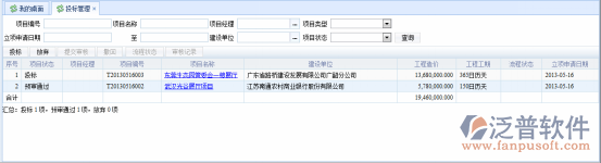 中落標(biāo)管理,對(duì)項(xiàng)目投標(biāo)結(jié)果的登記,同時(shí)必須提交審核,通過(guò)審核之后,項(xiàng)目的中落標(biāo)操作才能生效。