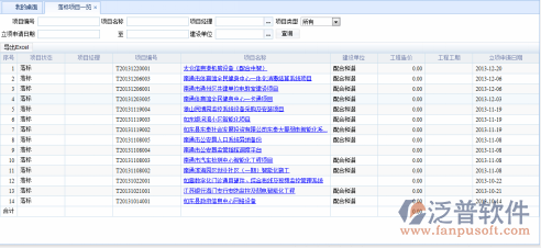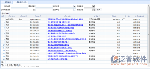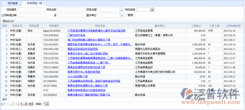 在圖-<在投項(xiàng)目一覽.瀏覽>中,通過(guò)查詢條件,可以查看項(xiàng)目狀態(tài)為“投標(biāo)”的記錄的相關(guān)資料,或者導(dǎo)出到EXCEL文件中。