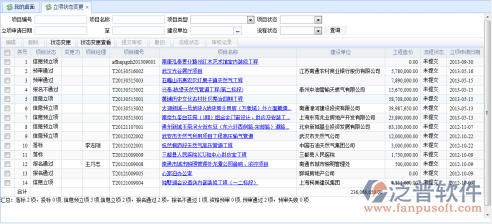 登錄項(xiàng)目管理系統(tǒng),點(diǎn)擊功能菜單樹(shù),投標(biāo)管理->狀態(tài)變更管理->立項(xiàng)狀態(tài)變更,系統(tǒng)轉(zhuǎn)入項(xiàng)目信息列表,系統(tǒng)瀏覽窗口如下: