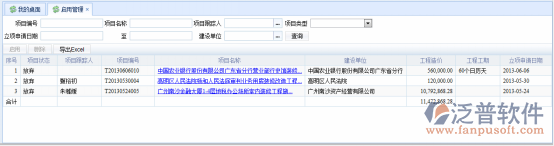 在圖-<啟用管理.瀏覽>中,選擇項(xiàng)目狀態(tài)為“放棄”的項(xiàng)目,根據(jù)實(shí)際情況進(jìn)行“啟用”、“刪除”操作,也可將項(xiàng)目狀態(tài)為“放棄”的項(xiàng)目導(dǎo)出到Excel中。