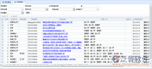 登錄項(xiàng)目管理系統(tǒng),點(diǎn)擊功能菜單樹(shù),投標(biāo)管理->權(quán)限管理,系統(tǒng)轉(zhuǎn)入項(xiàng)目信息列表,系統(tǒng)瀏覽窗口如下: