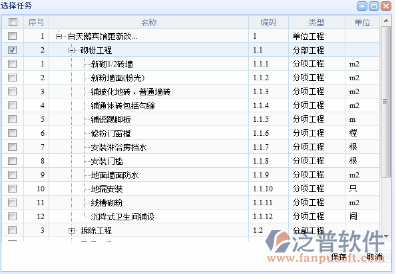 在圖-<施工報(bào)量.選擇任務(wù)>中,選擇WBS工程,在工程名稱前打“