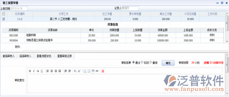 在圖-<施工報(bào)量.審核>中,相關(guān)人員根據(jù)項(xiàng)目施工現(xiàn)場(chǎng)審核上報(bào)的工程量、物資是否屬實(shí)。