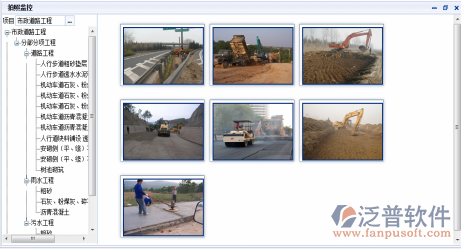 在圖-<拍照監(jiān)控.瀏覽>中,左側(cè)為項(xiàng)目樹,選擇某一項(xiàng)目,右側(cè)會(huì)顯示出該項(xiàng)目施工過程中的圖片(材料圖片、人員工作圖片等),此處圖片的顯示需要在施工報(bào)量的時(shí)候上傳。
