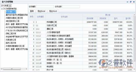 在圖-<工程匯總表.瀏覽>中,列出了項(xiàng)目各個(gè)分項(xiàng)工程的金額及月度完成情況,點(diǎn)擊藍(lán)色字體的分項(xiàng)工程,系統(tǒng)轉(zhuǎn)入如下圖所示: