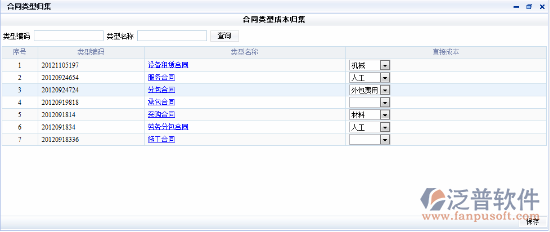 為了能更加快速的統(tǒng)計(jì)出項(xiàng)目的直接成本,可在此模塊設(shè)置各種類型的合同及資源歸屬。