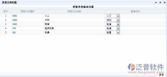 設(shè)置資源歸屬于直接成本分類(人工、機(jī)械、材料等)中的某一分類。