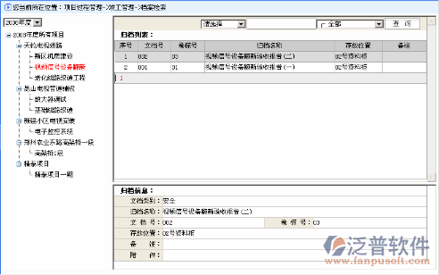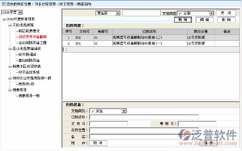 選擇工程名稱,點(diǎn)擊右上角的“新增”功能按鈕,列表下半幀顯示出新增歸檔信息頁面。如下圖: