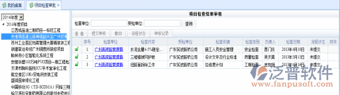 登錄項(xiàng)目管理系統(tǒng),點(diǎn)擊功能菜單,項(xiàng)目檢查->項(xiàng)目檢查審批,系統(tǒng)轉(zhuǎn)入檢查審批信息列表,系統(tǒng)瀏覽窗口如下: