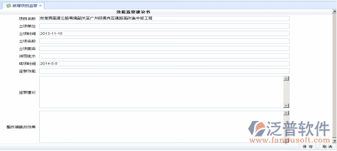 輸入效能檢查建議書的相關(guān)內(nèi)容信息,信息輸入無誤后點(diǎn)擊“保存”功能按鈕,建議書添加成功;