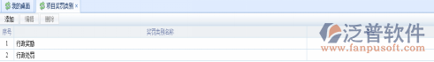 登錄項(xiàng)目管理系統(tǒng),點(diǎn)擊功能菜單,項(xiàng)目獎罰->項(xiàng)目獎罰分類,系統(tǒng)轉(zhuǎn)入項(xiàng)目獎罰類別信息列表,系統(tǒng)瀏覽窗口如下: