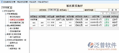 登錄項(xiàng)目管理系統(tǒng),點(diǎn)擊功能菜單,項(xiàng)目過程管理->項(xiàng)目獎罰->項(xiàng)目獎罰執(zhí)行,系統(tǒng)轉(zhuǎn)入項(xiàng)目獎罰執(zhí)行信息列表,系統(tǒng)瀏覽窗口如下: