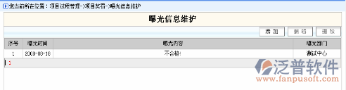 登錄項(xiàng)目管理系統(tǒng),點(diǎn)擊功能菜單,項(xiàng)目過程管理->項(xiàng)目獎罰->曝光信息維護(hù),系統(tǒng)轉(zhuǎn)入曝光信息維護(hù)信息列表,系統(tǒng)瀏覽窗口如下: