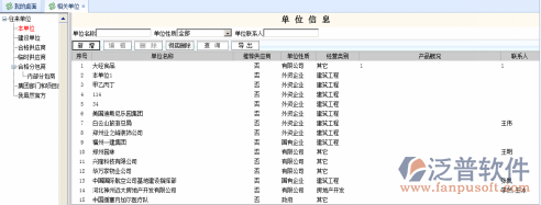 登錄項(xiàng)目管理系統(tǒng),點(diǎn)擊功能菜單,基礎(chǔ)設(shè)置->相關(guān)單位,系統(tǒng)轉(zhuǎn)入相關(guān)單位信息列表,系統(tǒng)瀏覽窗口如下: